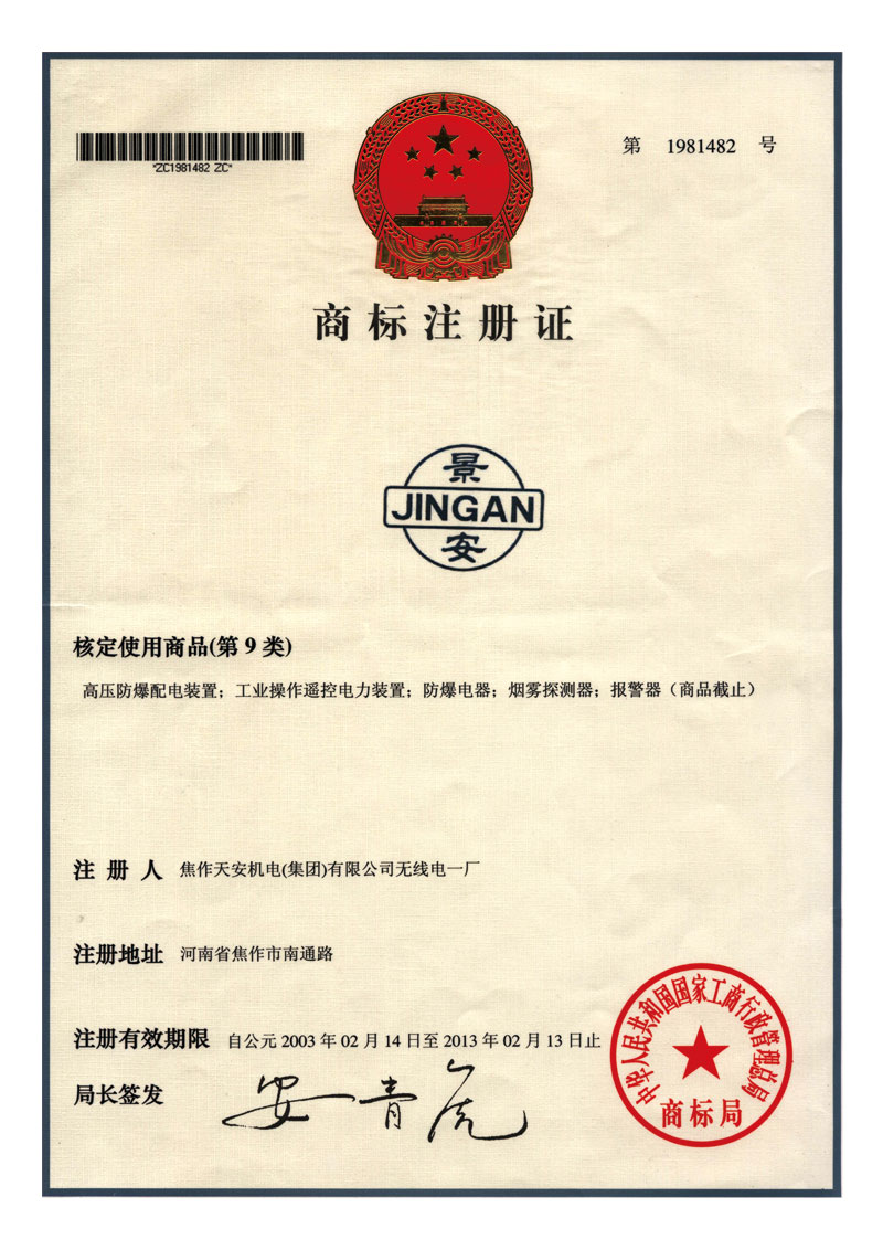 礦用巷道燈用本安電源專(zhuān)利證書(shū)