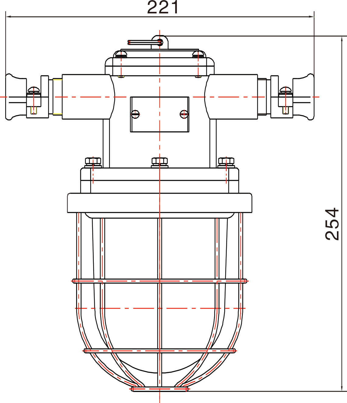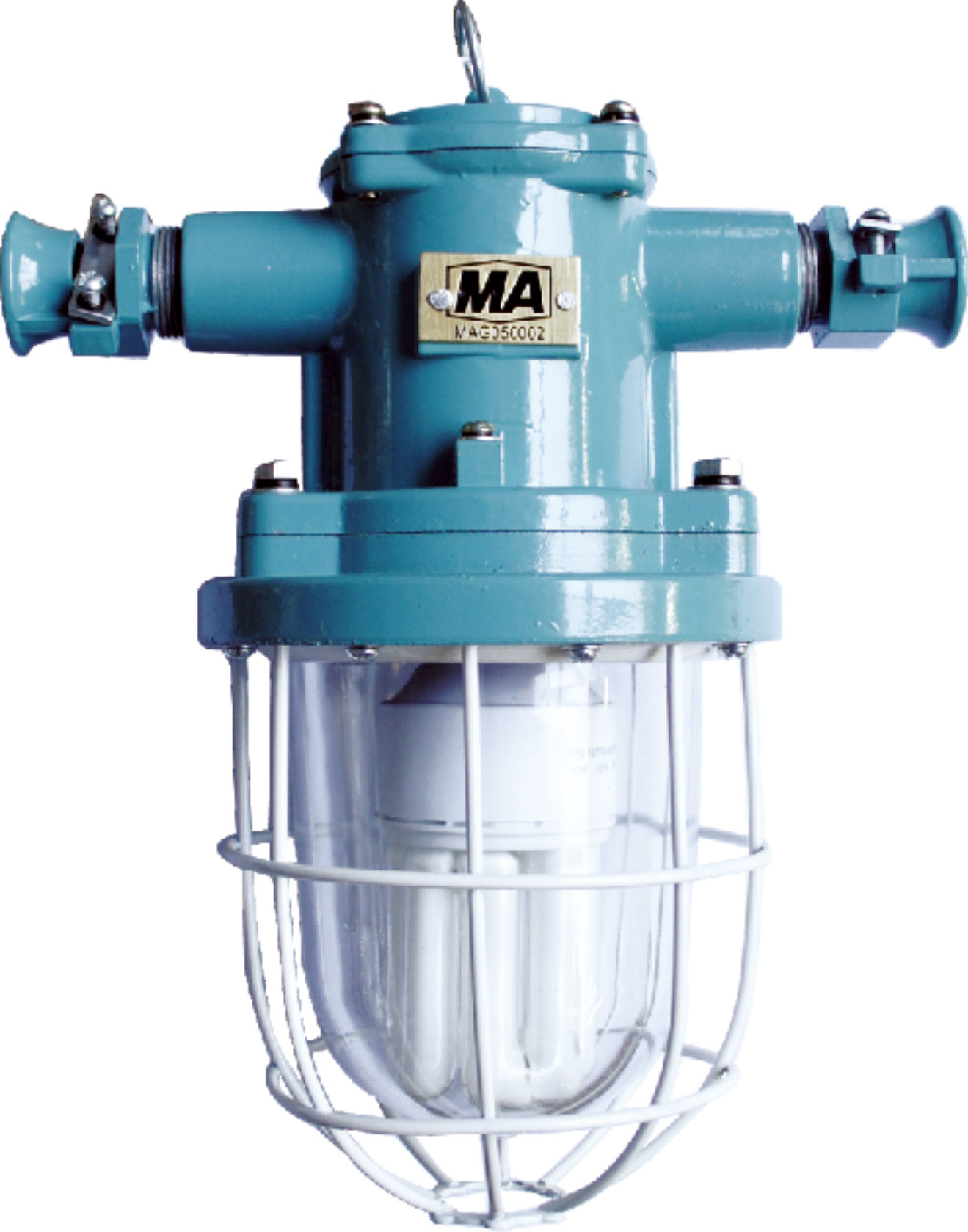 |   13W熒光燈由上蓋、上殼體、下殼體、防爆透明玻璃罩、金屬保護(hù)網(wǎng)等組成,上蓋與上殼體用M4螺釘連接,下殼體用M6螺釘與上殼體相連。防爆透明玻璃罩、護(hù)罩用M4螺釘固定在下殼體上。上殼體外有M4外接地螺釘、銘牌等,上殼體內(nèi)有接線板、M4內(nèi)接地螺釘、直口式壓接燈頭。下殼內(nèi)有密封墊、防爆透明玻璃罩及金屬保護(hù)網(wǎng),燈頭與電源采用直口式壓接方式。上蓋、上殼體、下殼體、防爆透明玻璃罩之間均有符合規(guī)定的隔爆接合面隔爆。 |